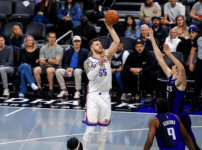 第二,国王真有点水了。被全面碾压,一个是内线差距,篮板球比雷霆少抢了12个;一个是进攻便秘,战术体系太简单了,基本就靠单点浪投,或者威少突分,效率比不过人家。再一个就是防守,国王队本身也没什么防守资源,核心全是进攻点。